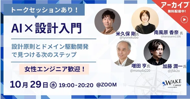 米久保 剛さん(@tyonekubo)増田 亨さん(@masuda220)加藤 潤一さん(@j5ik2o) の豪華なお三方と一緒に、普遍的な設計力と、AI時代に求められる新しい力を同時に学びます。