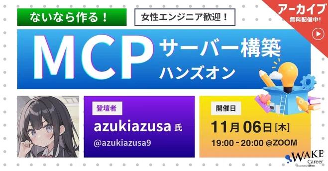 <アーカイブ公開!>ないなら作るMCPサーバー構築ハンズオン【WAKE Career主催】 - connpass